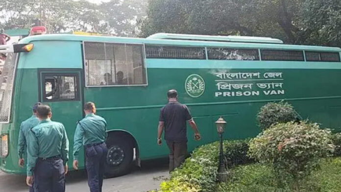 সোমবার (২৪ নভেম্বর) সকাল পৌনে ১০টার দিকে ঢাকার সেনানিবাসের বিশেষ কারাগার থেকে বাংলাদেশ জেল-প্রিজন ভ্যান লেখা শীতাতপ নিয়ন্ত্রিত সবুজ রঙের গাড়িতে করে কড়া নিরাপত্তায় তাদের আনা হয়।