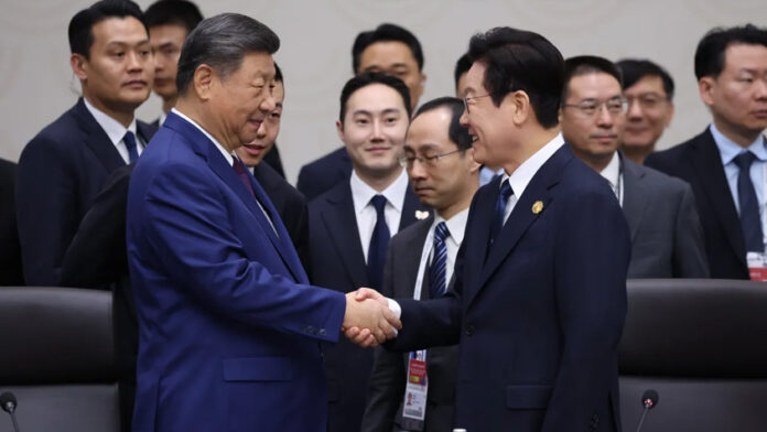 দক্ষিণ কোরিয়ার গেওংজুতে অনুষ্ঠিত হতে থাকা এশিয়া-প্যাসিফিক কোঅপারেশন অর্গানাইজেশনের (এপেক) সম্মেলনের শেষ দিনে সাইডলাইনে চীনের প্রেসিডেন্ট শি জিনপিংয়ের সঙ্গে বৈঠকে বসবেন দক্ষিণ কোরিয়ার প্রেসিডেন্ট লি জায়ে মিউং। গত কয়েক যুগের মধ্যে এটা চীনের প্রেসিডেন্টের প্রথম কোরিয়া সফর।