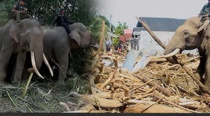 ইন্দোনেশিয়ার বেসরকারি সংবাদমাধ্যম কমপাস টেলিভিশনের প্রতিবেদনে বলা হয়েছে, দেশটির প্রাকৃতিক সম্পদ সংরক্ষণ সংস্থা (বিকেএসডিএ) আচেহ প্রদেশের উত্তর-পশ্চিমাঞ্চলীয় এলাকা সুমাত্রা দ্বীপে চারটি হাতি পাঠিয়েছে। মূলত ওই অঞ্চলে বন্যার কারণে চলাচলের রাস্তা সম্পূর্ণ বন্ধ হয়ে যাওয়ায় এবং ভারী যন্ত্রাংশগুলো মাটিতে চাপা পড়ায় হাতিগুলোকে কাজে লাগানো হচ্ছে।