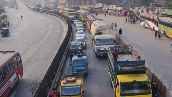 বুধবার (১৮ মার্চ) ভোর ৪টার দিকে এই মহাসড়কের প্রায় ১০ কিলোমিটার এলাকাজুড়ে ছিল যানবাহনের দীর্ঘসারি। বিকল্প সড়ক না থাকায় দীর্ঘ সময় থেমে থাকে যানবাহন। কোথাও কোথাও পুলিশি তৎপরতায় থেমে থেমে যানবাহন চলতে দেখা গেছে।
