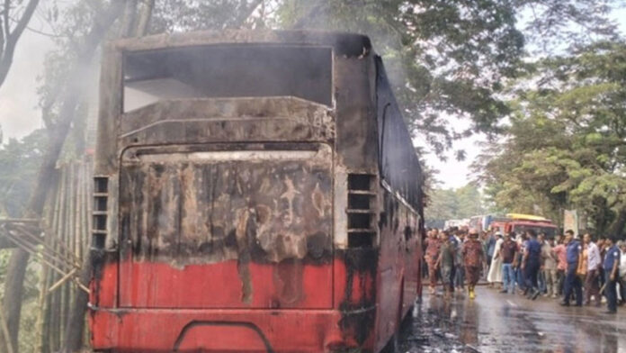 বাসটির চালক মো. শাহজালাল জানান, সকাল ১১টায় যাত্রী নিয়ে বরিশাল থেকে খুলনার উদ্দেশে যাচ্ছিলেন। পথে উজিরপুরের ইচলালী টোল প্লাজায় আসলে যাত্রীরা বাসে ধোঁয়া দেখে চিৎকার শুরু করেন। গাড়ি থামালেই আগুনের কুণ্ডলী দেখতে পাই। তবে সকল যাত্রী নিরাপদে গাড়ি থেকে নামতে সক্ষম হয়েছেন।