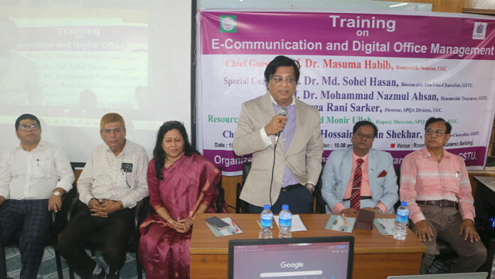 বুধবার (১৫ অক্টোবর) গোপালগঞ্জ বিজ্ঞান ও প্রযুক্তি বিশ্ববিদ্যালয়ে (গোবিপ্রবি) কর্মকর্তাদের ‘ই-কমিউনিকেশন ও ডিজিটাল অফিস ম্যানেজমেন্ট’ বিষয়ে প্রশিক্ষণ কর্মশালা শুরু হয়েছে।