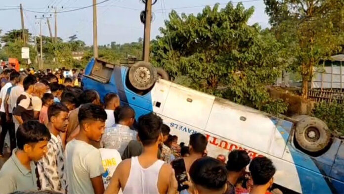 খাদে পড়ে উল্টে বাস চাপায় প্রাণ গেল মা-মেয়ের