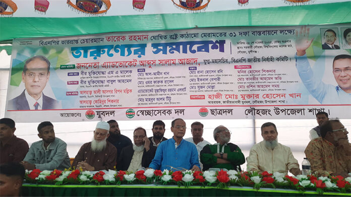 লৌহজং উপজেলা যুবদল, স্বেচ্ছাসেবক দল ও ছাত্রদলের কর্মীসমর্থকের উপস্থিতিতে তারুণ্যের সমাবেশ অনুষ্ঠানে প্রধান অতিথি বিএনপির নির্বাহী কমিটির যুগ্ম মহাসচিব অ্যাডভোকেট আবদুস সালাম আজাদ নেতাকর্মীদের উদ্দেশে বলেন,
