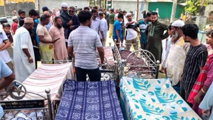 আজ শুক্রবার (১৩ মার্চ) সকাল ১০টায় জানাজার নামাজ শেষে দাফন করা হয়েছে নববধূ মিতু আক্তার, তার ছোট বোন লামিয়া, দাদি রাশিদা ও নানিকে। শেষ বিদায়ের সময় স্বজনদের কান্নায় ভারী হয়ে ওঠে পুরো এলাকা।