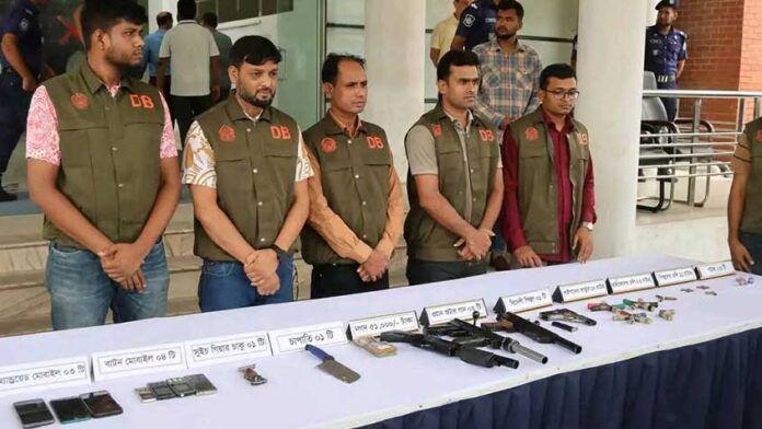 অভিযানে একটি বিদেশী ৭.৬৫ পিস্তল (ম্যাগাজিনসহ), তিনটি একনলা শর্টগান, ১১ রাউন্ড ৭.৬৫ পিস্তলের তাজা গুলি, রাইফেলের গুলি, ১৭ রাউন্ড শর্টগানের কার্তুজ, দেশীয় ধারালো অস্ত্র (চাপাতি ও সুইচ গিয়ার চাকু), নগদ ৫১,০০০ (একান্ন হাজার) টাকা, বিভিন্ন মডেলের একাধিক মোবাইল ফোনসহ অন্যান্য সামগ্রী জব্দ করা হয়।