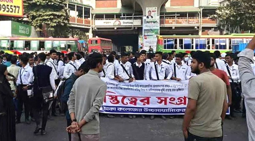 প্রস্তাবিত ‘ঢাকা সেন্ট্রাল ইউনিভার্সিটি’র স্কুলিং মডেলভিত্তিক খসড়া অধ্যাদেশ উচ্চমাধ্যমিক শিক্ষায় অনিশ্চয়তা তৈরি করেছে— এমন অভিযোগে রাজধানীর শাহবাগ মোড় অবরোধ করেছে পাঁচ সরকারি কলেজের উচ্চমাধ্যমিক শ্রেণির শিক্ষার্থীরা।