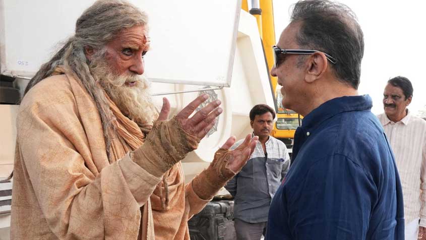 শুটিং সেট থেকে অমিতাভ বচ্চন নিজেই তার ব্লগে সেই মাহেন্দ্রক্ষণের ছবি শেয়ার করেছেন। সেখানে দেখা যায়, অশ্বত্থামার লুকে থাকা অমিতাভকে উষ্ণ আলিঙ্গনে জড়িয়ে ধরছেন সুপ্রিম ইয়াসকিন থুড়ি কমল হাসান। আবেগঘন অমিতাভ লিখেছেন,