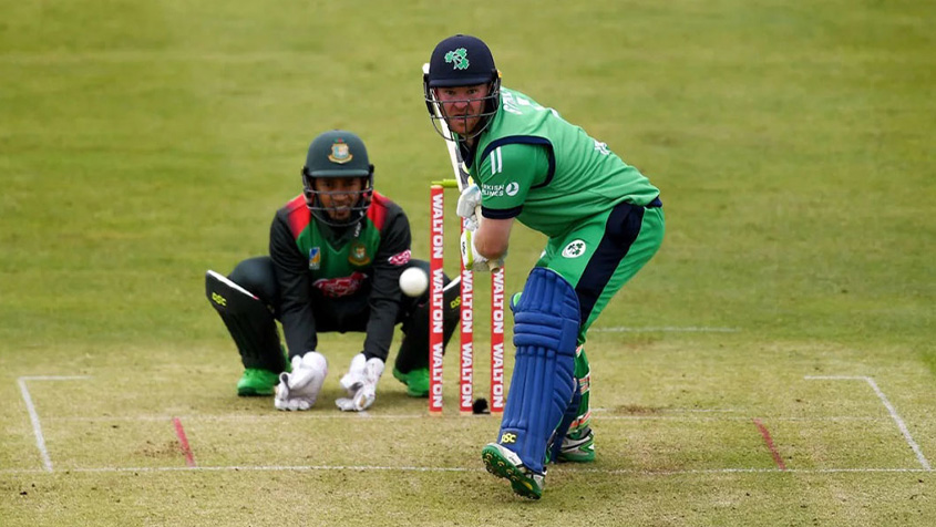 ব্যাটিংয়ে উদ্বোধনী জুটি ঝড়ো শুরু এনে দেয় সফরকারী আয়ারল্যান্ডকে। ৪.২ ওভারে ৪০ রান আসে দুই ওপেনার অধিনায়ক পল স্টার্লিং ও টিম টেক্টরের ব্যাট থেকে। জুটি ভাঙেন তানজিম হাসান সাকিব। মিডউইকেটে স্টার্লিংকে সাইফ হাসানের ক্যাচ বানিয়ে সাজঘরে ফেরান। ১৮ বলে ২১ রান করেন আইরিশ দলপতি।